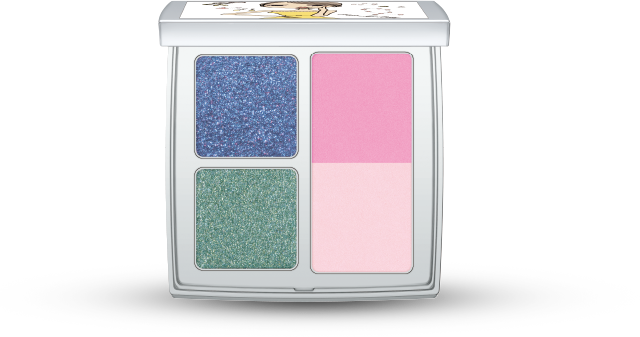 光澤粉紅:淺粉紅中奢華的混合了藍色、紅色、白色、金色銀幻光澤,能增添光澤感和透明感。重疊於粉紅上能自由調整發色與光澤感,創造輕盈柔和的印象。也可當高明度使用,或是重疊在眼影上瞬間展現華麗表情。