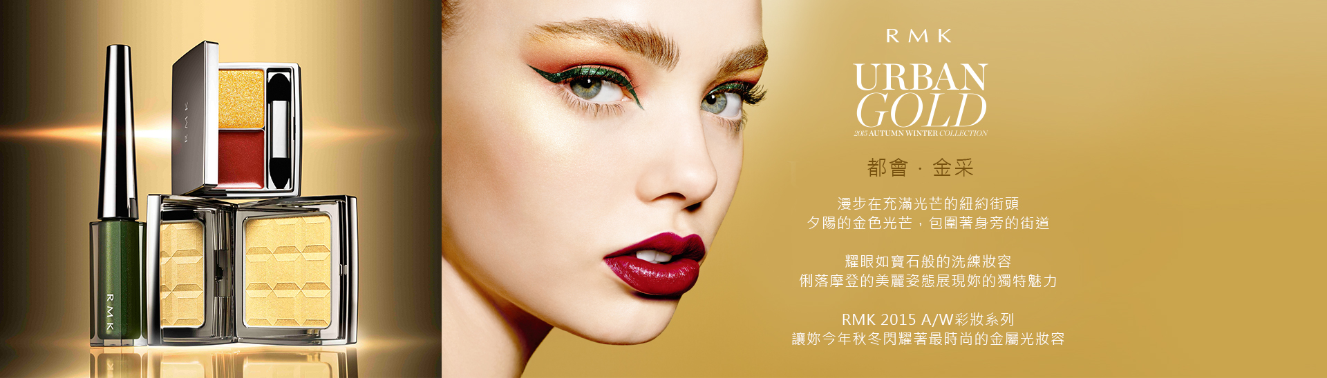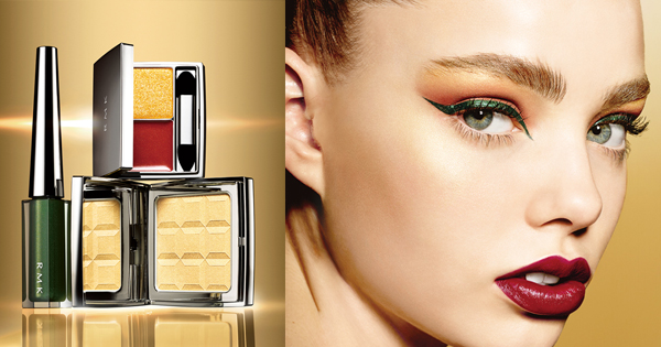 紅色霜狀眼影打造出令人注目的摩登完妝感。黃金色調的粉狀眼影呈現整面的光芒,令人感受到具有強烈女人味的性感。