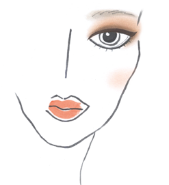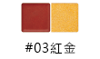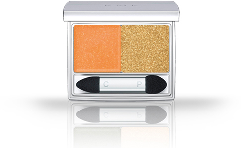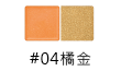 橘色調霜狀眼影讓眼部印象看起來輕盈明亮,結合時尚沉穩印象,微帶橘色感的古典金色粉狀眼影。