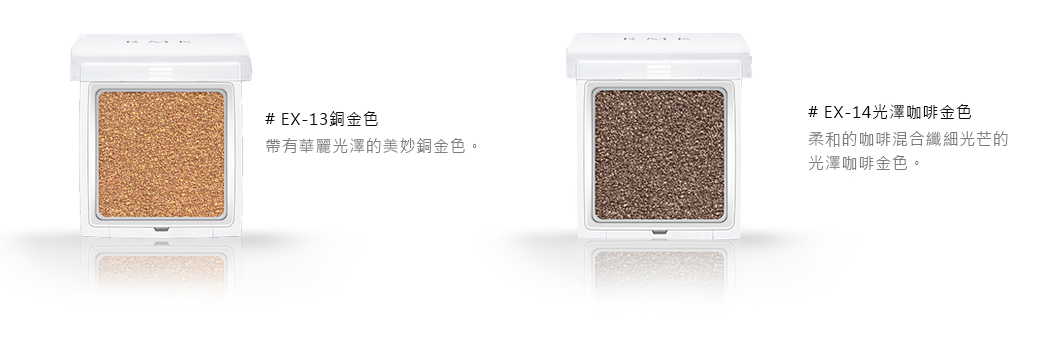 如眼所見,乾淨發色的經典眼影N發售了搭配秋冬系列的新色,能自然溶合於眼部,綻放華麗光澤的銅金色。 柔和咖啡色調再混合纖細光澤的光澤咖啡金;任一款皆能與肌膚完美融合,自然的發色同時產生銀幻質感,展現出充滿都會光澤的摩登眼神。