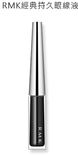 具濃厚發色能描繪出俐落線條,突顯眼部印象的經典持久眼線液。具有彈力的細筆尖,輕易描繪出完美精緻的線條。從基本款黑色及具有玩色心情的色調,聚集充滿RMK風格的7色。使用炭黑色,實現了無限濃厚感的黑,其他色調添加細緻的珠光使發色擁有光澤感,具優秀速乾性與長時間不易暈染的防水處方。