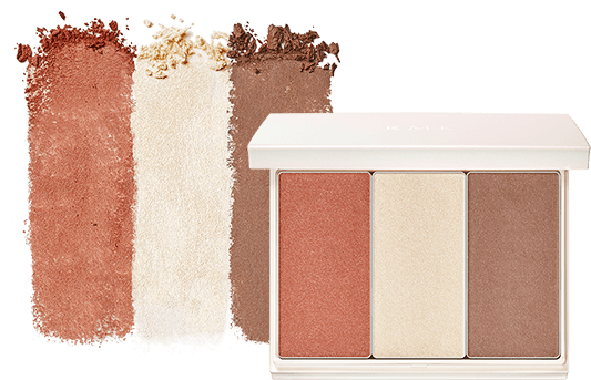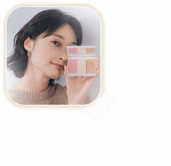 頰采、打亮色、修容色3種類型合而為一的頰采盤。細膩的粉體宛如肌膚原生的一部份輕柔服貼。單色使用或混合使用色彩也不會渾濁,更增添雙頰微微的光澤度。